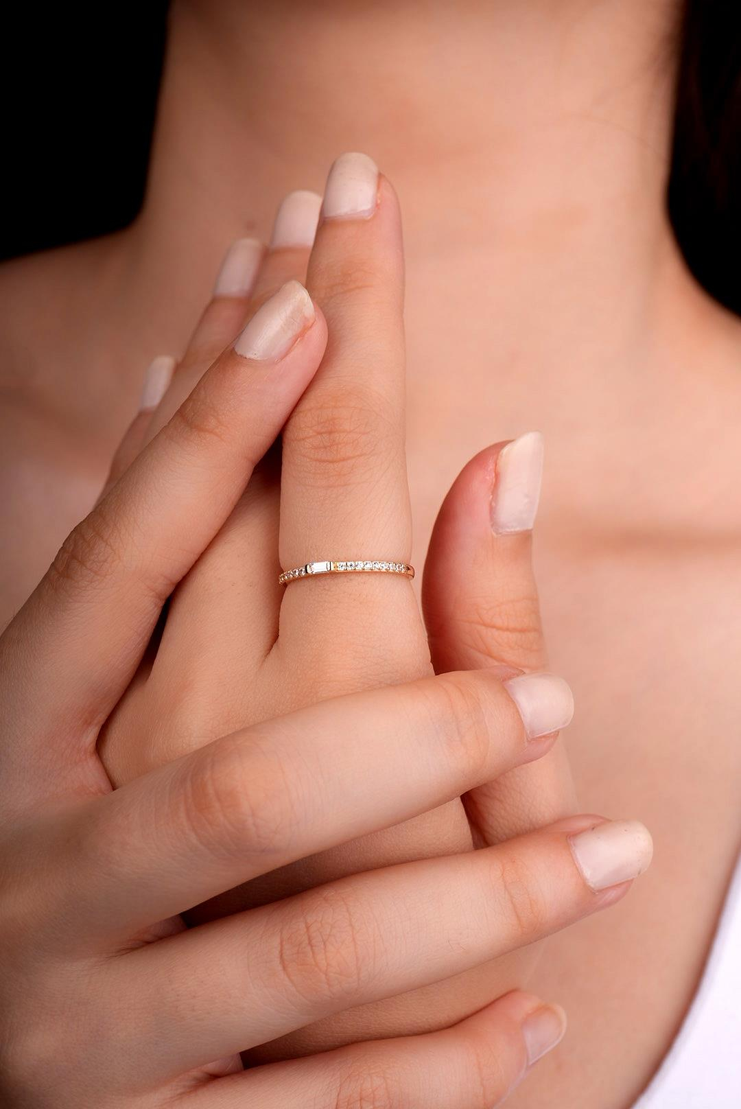14 Ayar Altın Beyaz Baget Taşlı  Yüzük