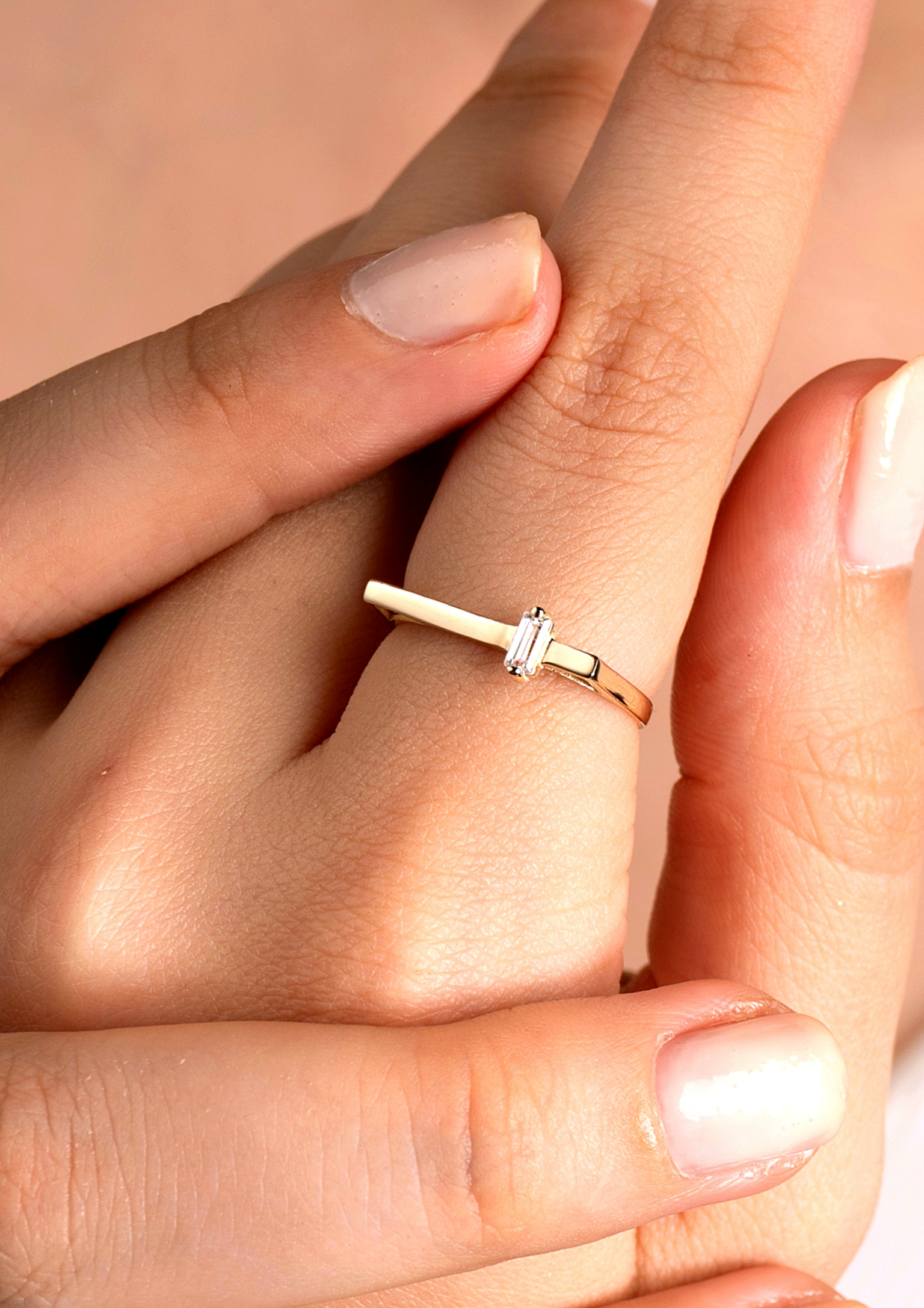 14 Ayar Altın Beyaz Baget Taşlı  Yüzük