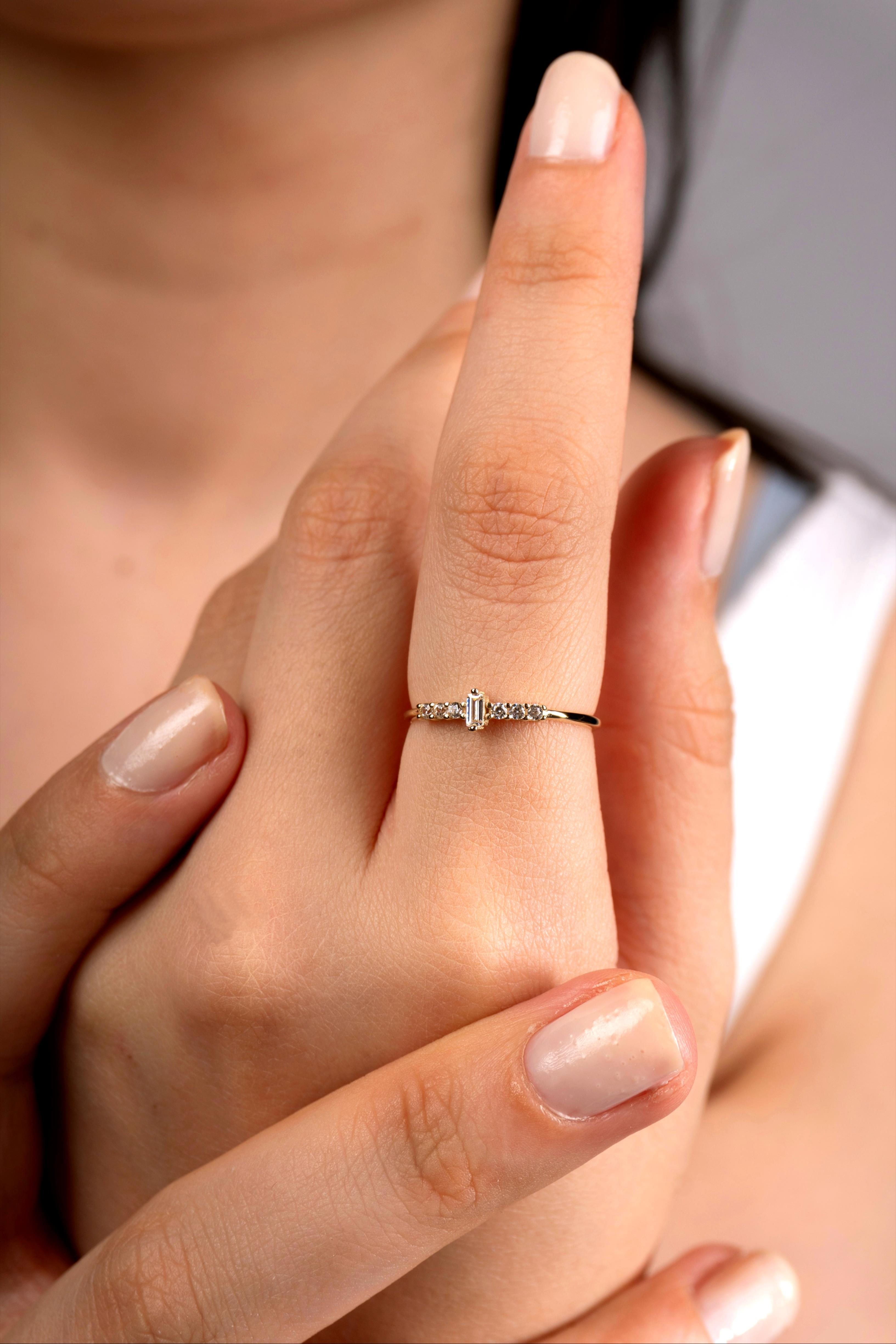 14 Ayar Altın Beyaz Baget Taşlı  Yüzük