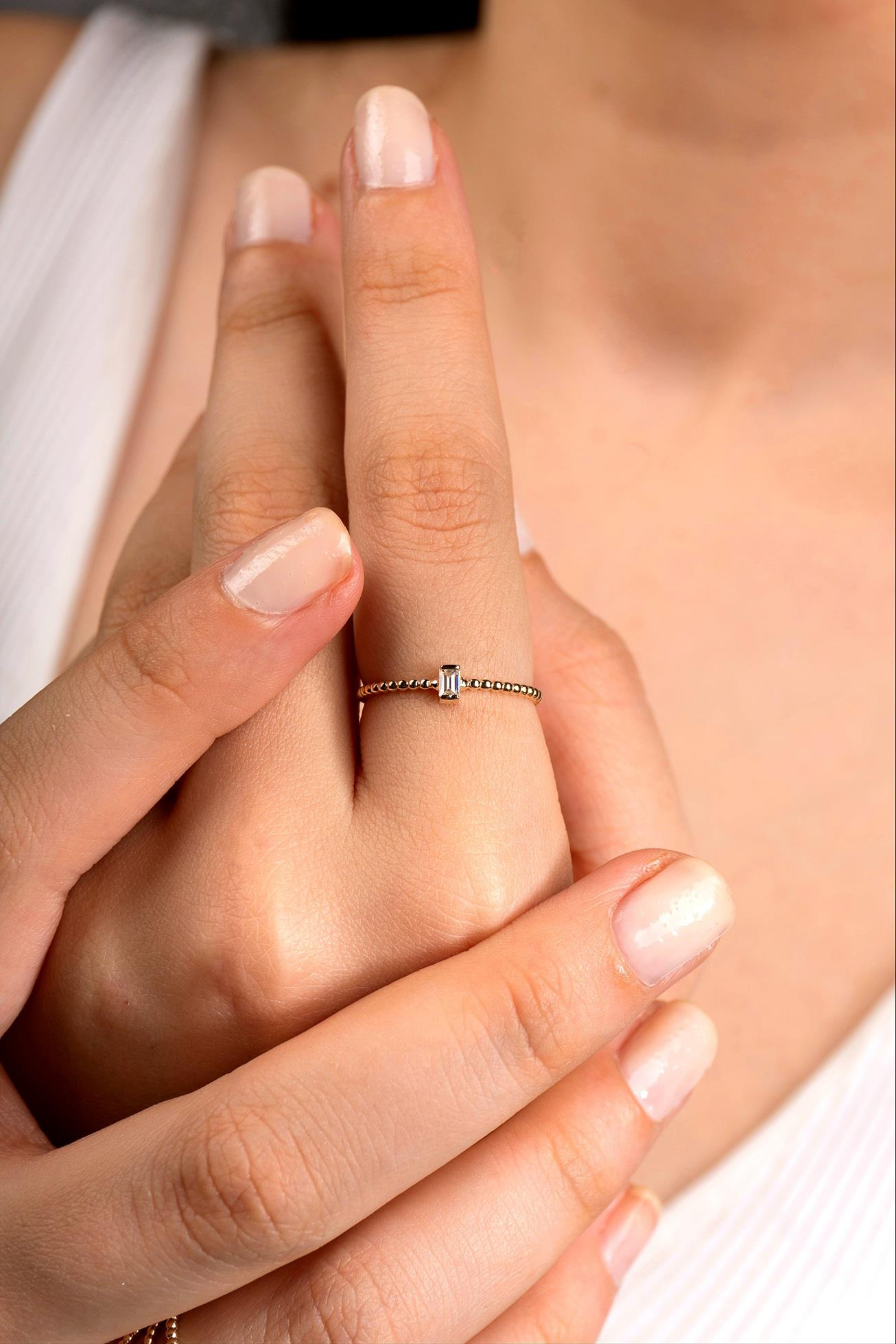 14 Ayar Altın Beyaz Baget Taşlı Yüzük