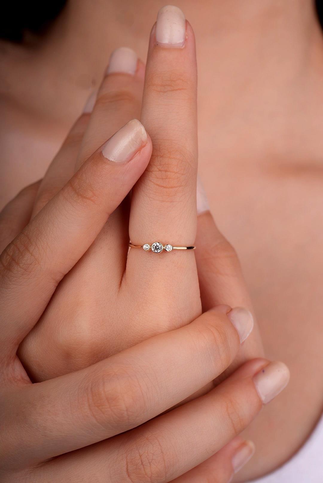 14 Ayar Altın Beyaz Taşlı Minimal Yüzük