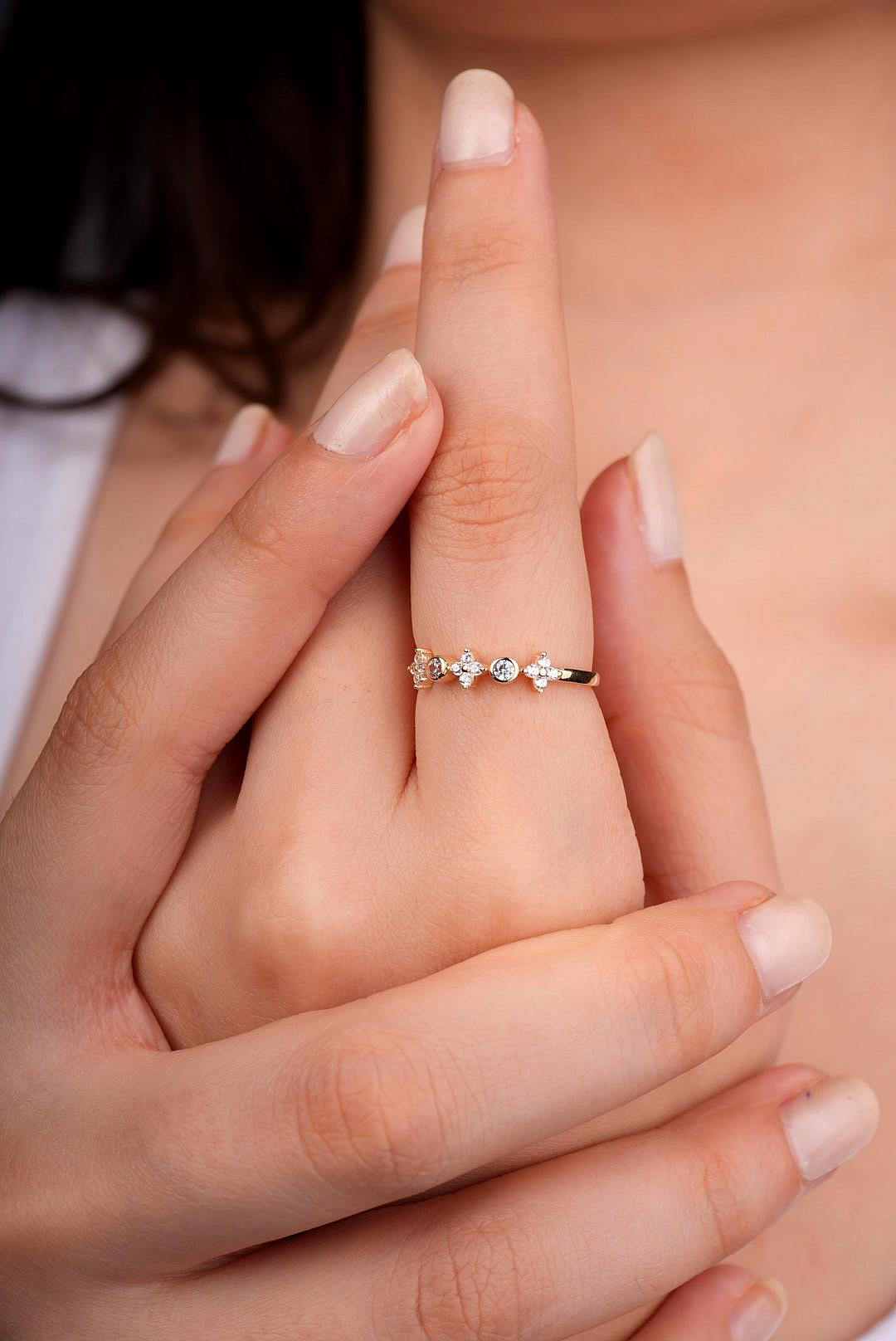 14 Ayar Altın Beyaz Taşlı Minimal Yüzük
