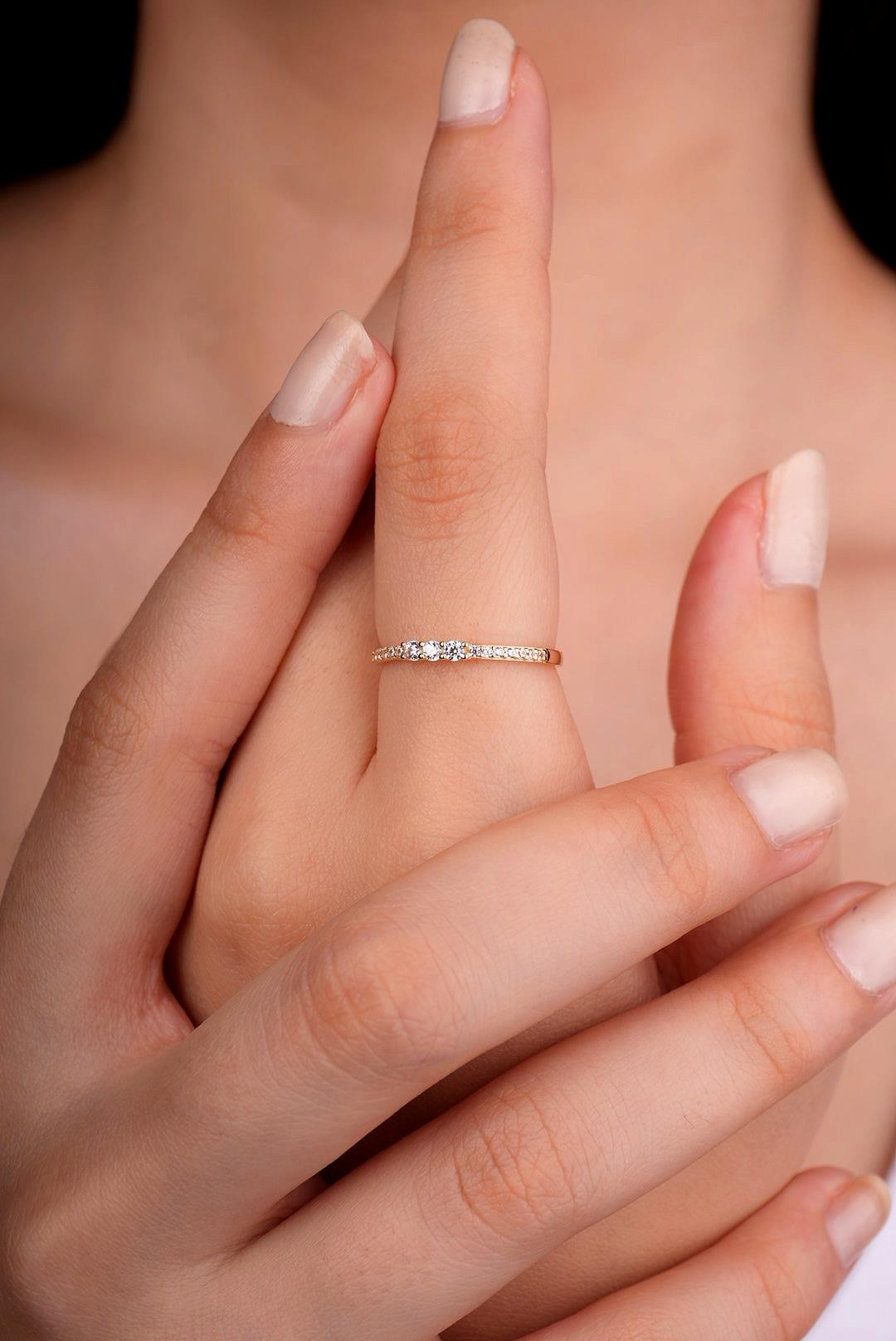14 Ayar Altın Beyaz Taşlı Yarımtur Minimal Yüzük