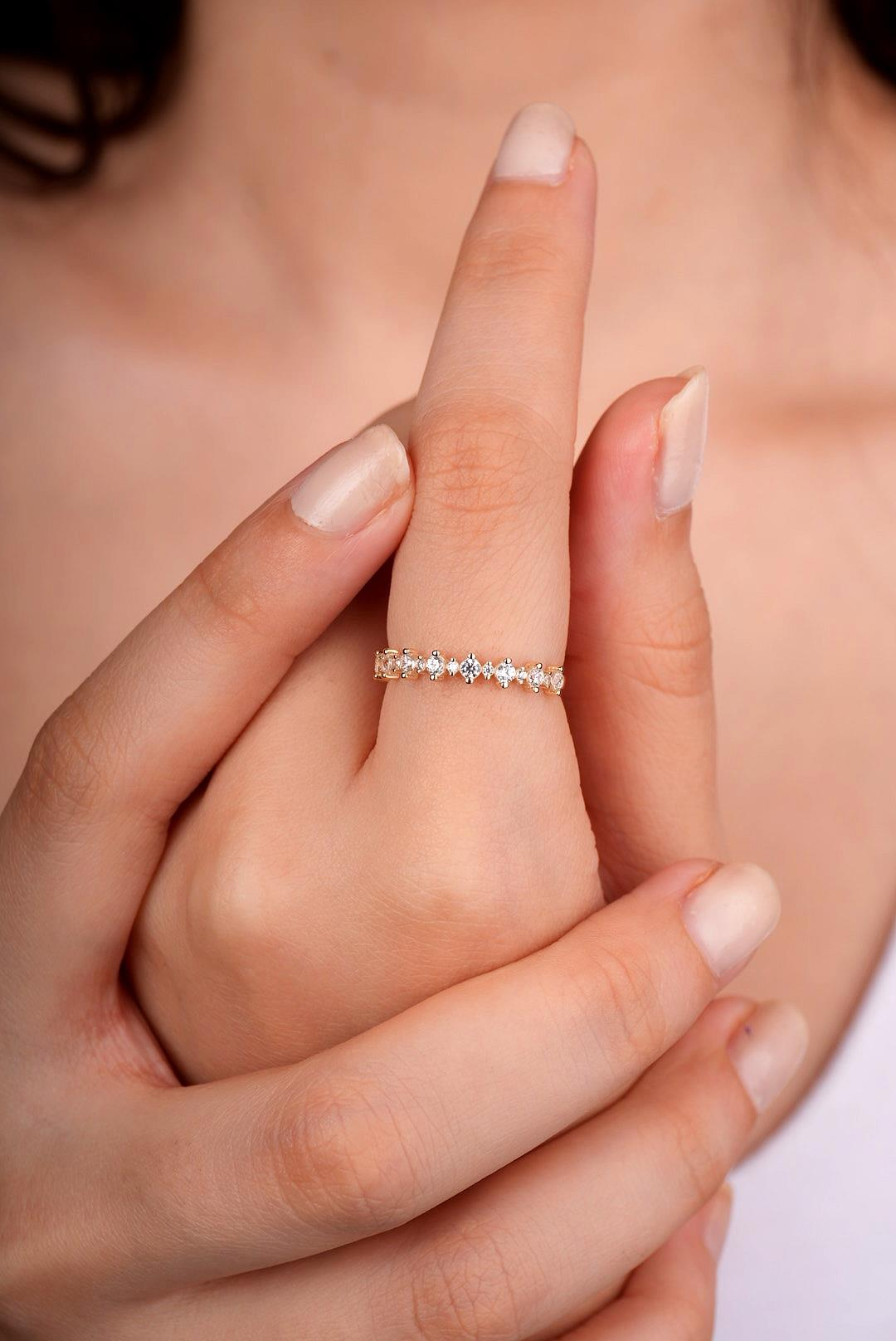 14 Ayar Altın Beyaz Taşlı Yarımtur Minimal Yüzük