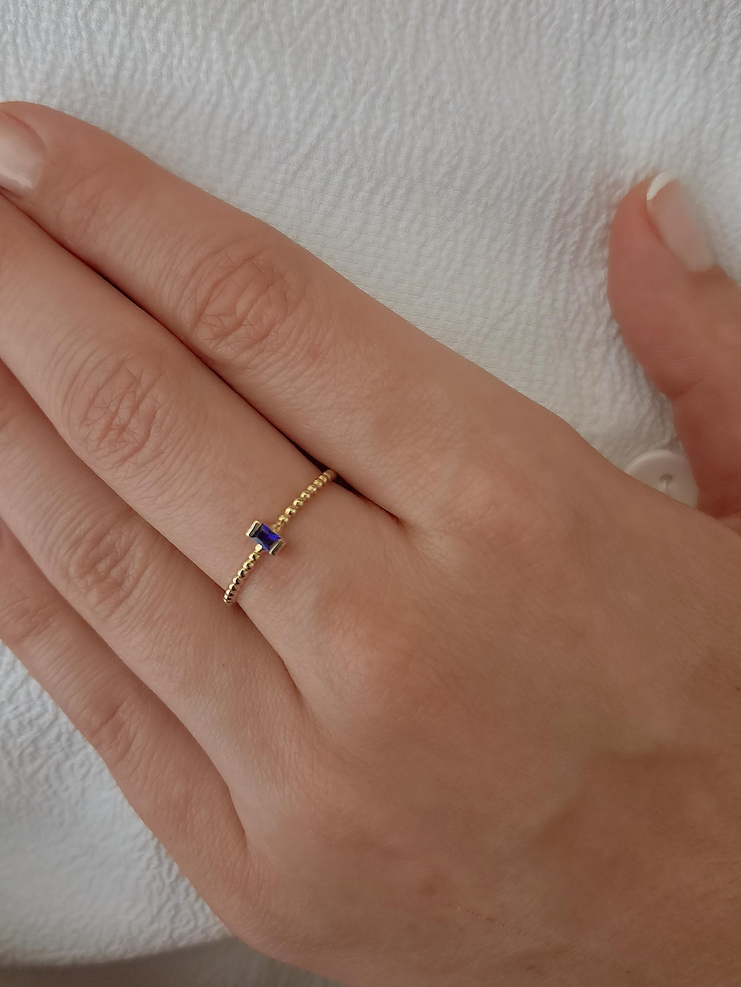 14 Ayar Altın Mavi Baget Taşlı Yüzük