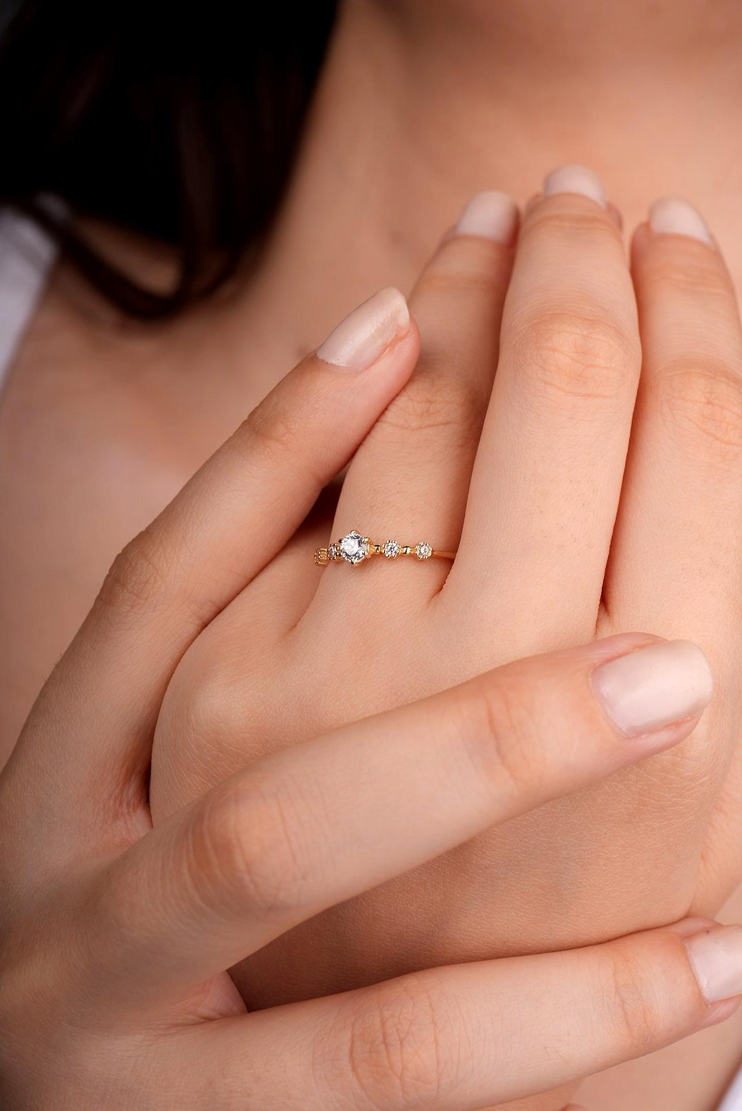 14 Ayar Altın Tek Taş Minimal Yüzük